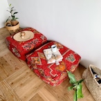 こちらはカバーのみの販売です。中にはクッション材や家で余っている使わない布ものや端切れなどを詰めお好みのボリュームにてお使いくださいませ。シーズンオフの毛布などを収納がわりに詰める方法もあります。モロッコのプフはもともと収納用途のアイディアでもあるのです。